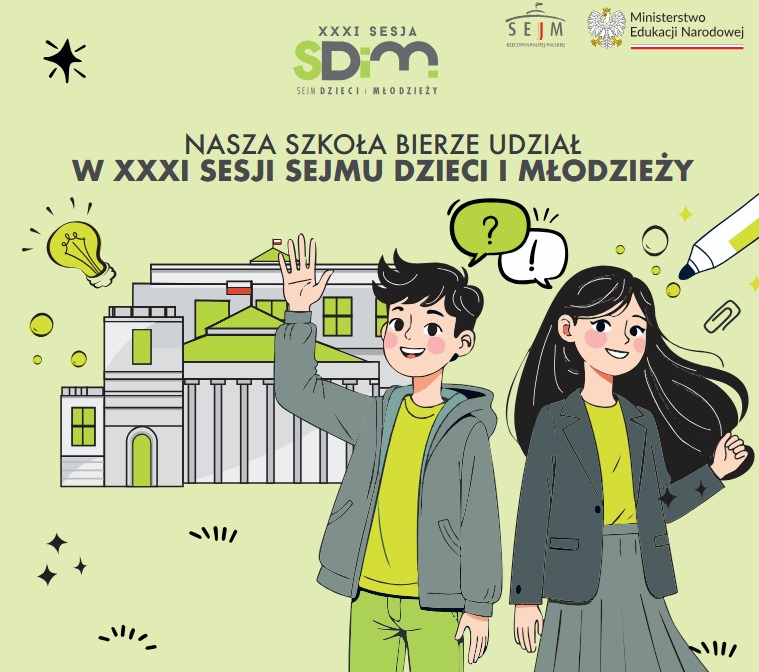 Nasza szkoła brała udział w projekcie partycypacyjno-edukacyjnym kierowanym do uczniów i uczennic trzech ostatnich klas szkoły podstawowej – Sejm Dzieci i Młodzieży. Jest to projekt, którego celem jest edukacja najmłodszego pokolenia Polek i Polaków w zakresie parlamentaryzmu i demokracji. XXXI edycja SDiM pod hasłem „PorozmawiajMY o edukacji obywatelskiej”.
