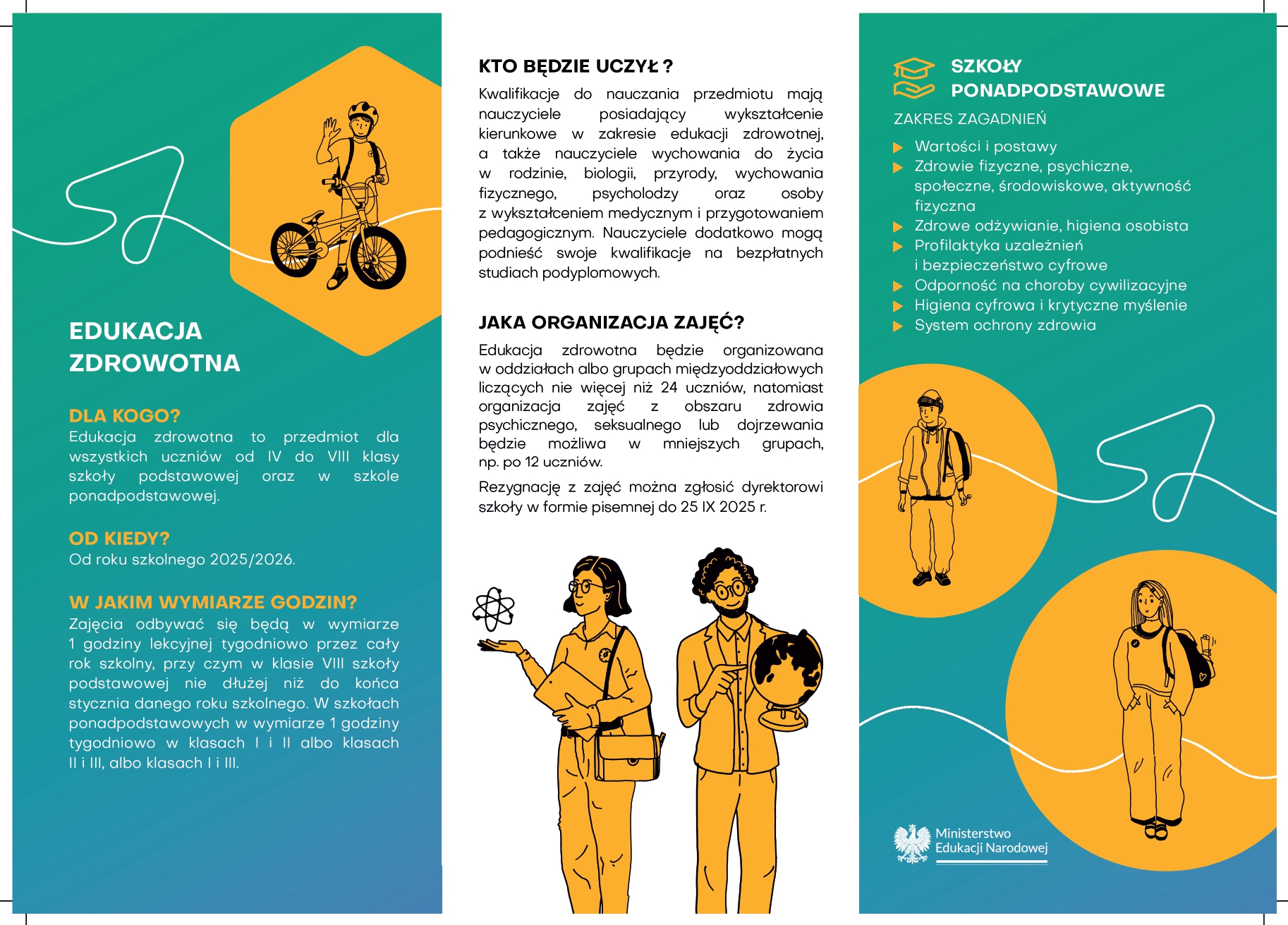 Więcej informacji dotyczących nowego przedmiotu na https://www.gov.pl/web/edukacja/edukacja-zdrowotna lub na https://zpe.gov.pl/edukacja-zdrowotna