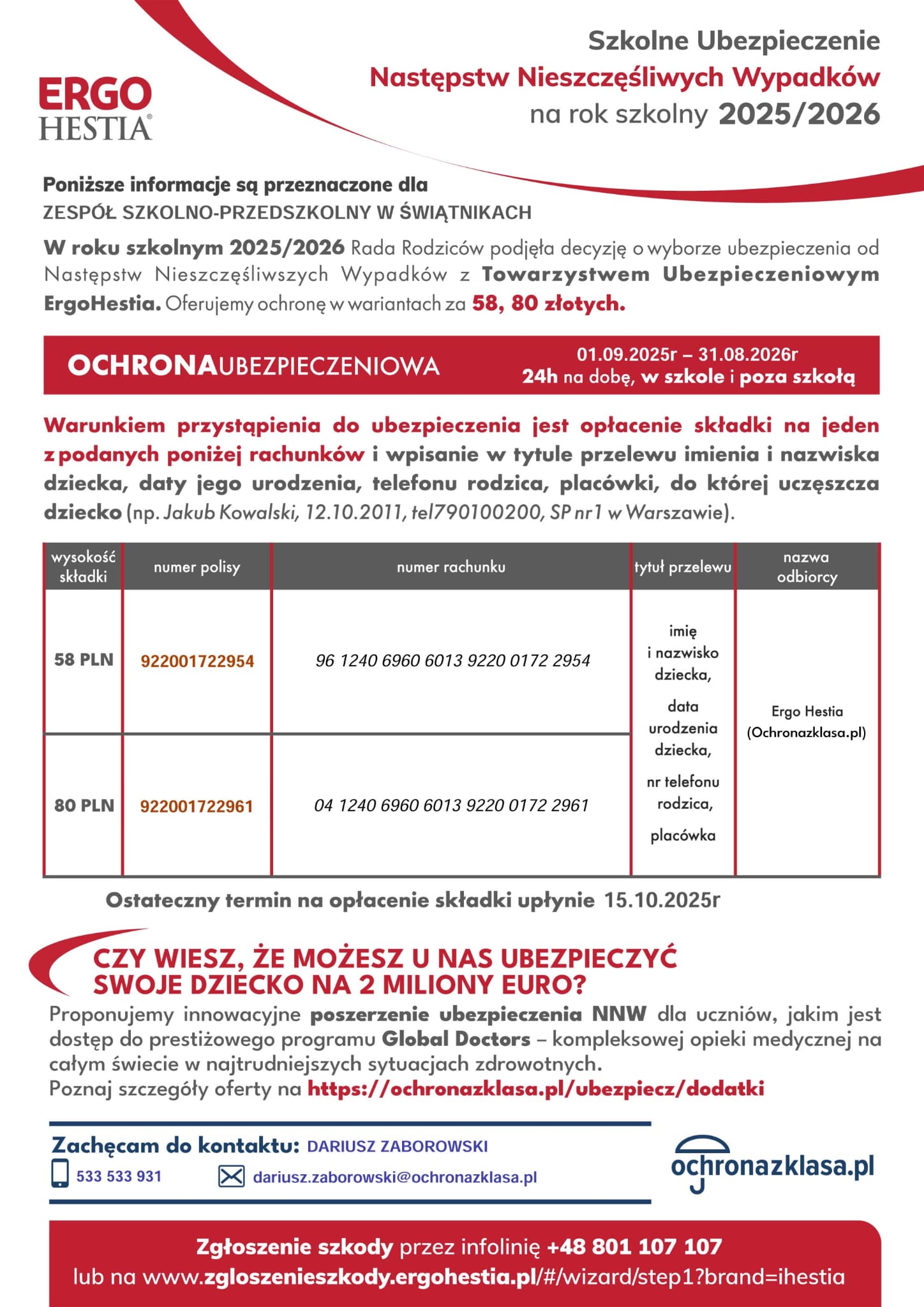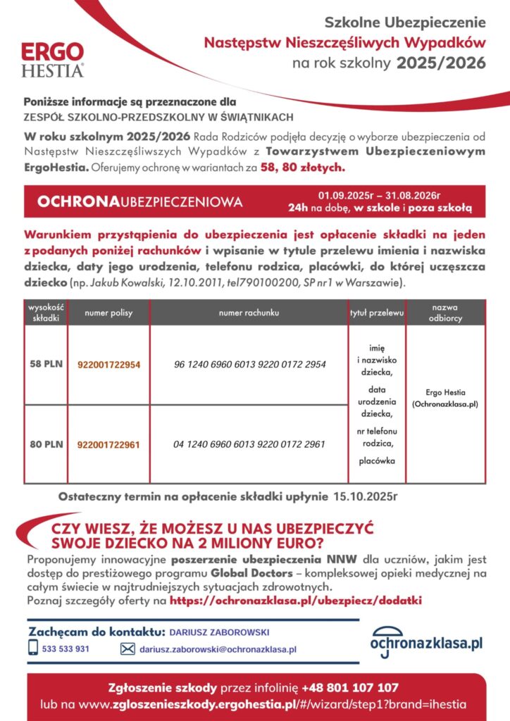 W tym miejscu znajdą Państwo informacje na temat ubezpieczenia NNW uczniów w naszej szkole: